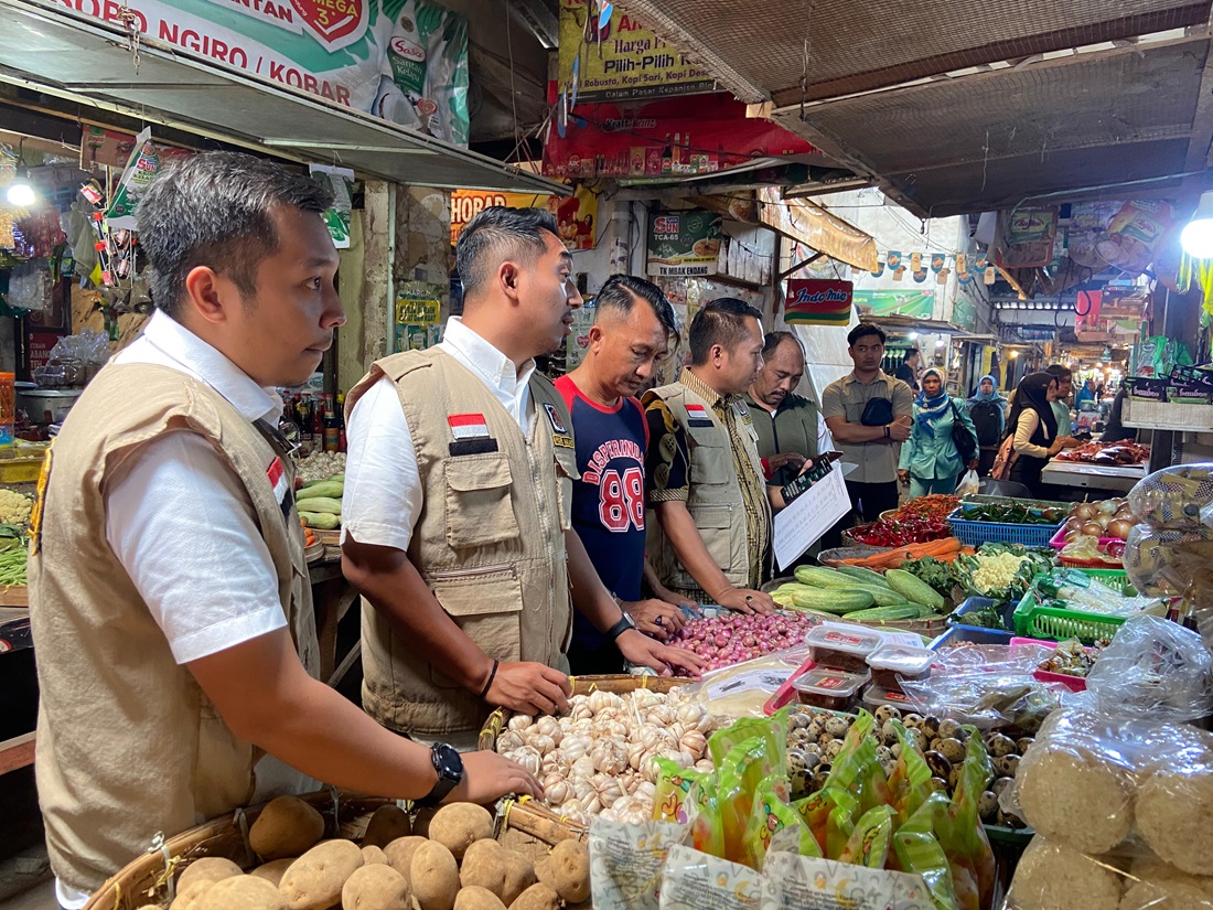 TPID Kabupaten Malang dan Satgas Pangan Polres Malang saat melakukan pemantauan ketersediaan bahan pokok dan harga sembako di Pasar Kepanjen, Kec Kepanjen, Kab Malang