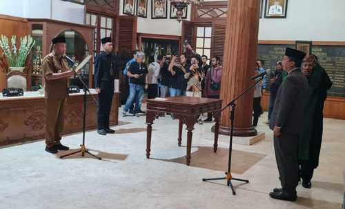 Pelantikan yang berlangsung di Pendopo Kongas Arum Kusumaning Bongso ini mengakhiri polemik pelantikan Tri Hariadi yang tertunda sampai dua kali.
