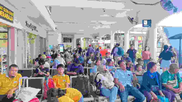 Aktifitas penumpang di Stasiun Gubeng Kota Surabaya, kemarin.