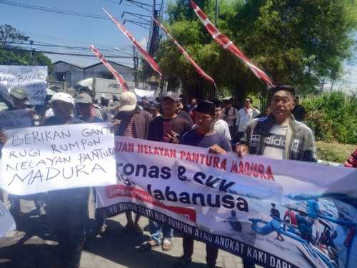 Tuntut Ganti Rugi Rumpon, Ratusan Nelayan Sampang Demo Petronas di Gresik