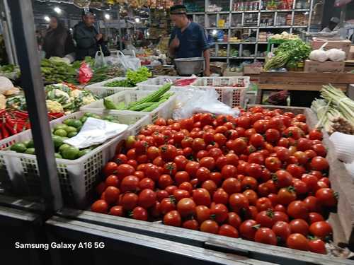 Penjualaan tomat di Pasar Madyopuro merosot tajam, harganya berkisar Rp. 3000 hingga 4000 per kg