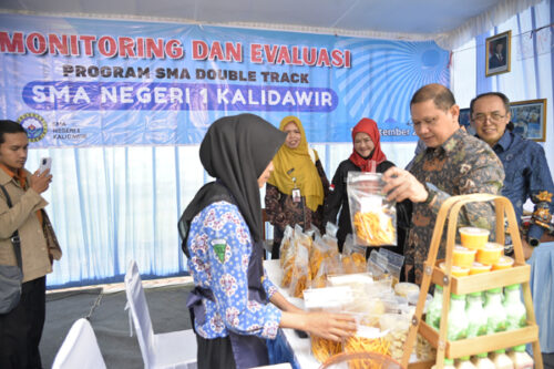 Pada kesempatan ini, Aries juga menyempatkan untuk mencicipi produk Double Track para murid. Salah satunya produk tata boga yang menurut Aries tak kalah dengan industri makanan bermerek.