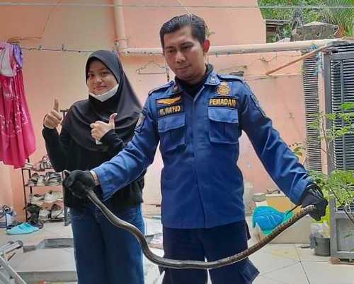 ”Keberadaan ular yang bersembunyi di celah sempit area tempat berjualan, sempat menjadi kendala. Namun, ular piton tersebut berhasil diamankan dalam waktu singkat,” ujarnya.