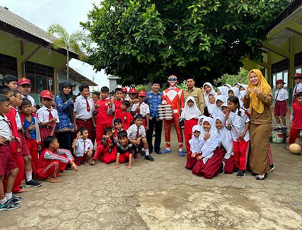 Kehadiran “pahlawan super bergizi” ini langsung mencuri perhatian para siswa di SDN 03 Tanjung Bumi dan SDN 01 Tanjung Bumi serta TK Hidayatullah.