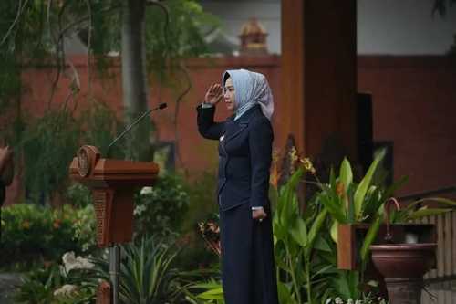 Wali Kota Mojokerto, Ika Puspitasari, bertindak sebagai inspektur upacara yang diikuti jajaran Forkopimda, TNI-Polri, ASN, veteran, serta pelajar dari berbagai sekolah.