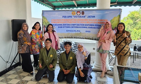 Pada tanggal 12 September 2025, tim pengabdian masyarakat prodi Akuntansi UPN “Veteran” Jawa Timur melaksanakan sosialisasi pengelolaan keuangan rumah tangga dan optimalisasi UMKM di kabupaten Bangkalan. Acara tersebut merupakan kolaborasi dengan Dharma Wanita Persatuan (DWP) UPT PPD Surabaya Selatan Badan Pendapatan Daerah (Bapenda) Provinsi Jawa Timur. Dalam rangka mengatasi stunting di provinsi Jawa Timur, kedua organisasi tersebut memberikan sosialisasi dan berupaya mengoptimalkan potensi UMKM di Madura.