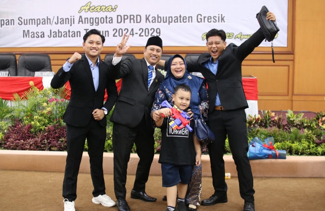Sudadi Anggota dewan bersama keluarga usai di lantik di gedung DPRD Gresik