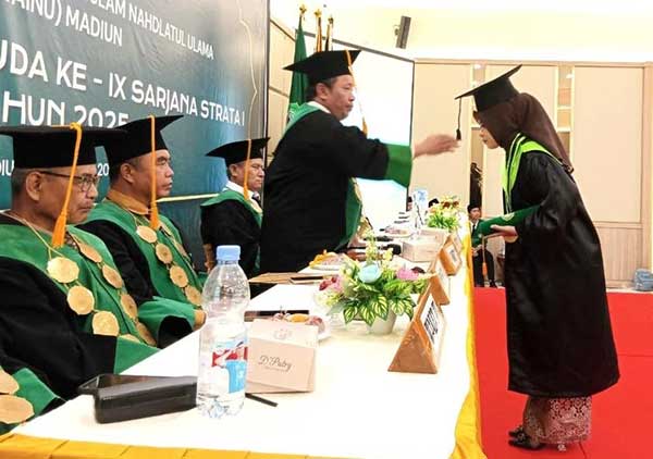 Wakil Bupati Madiun, dr. Purnomo Hadi menghadiri Rapat Terbuka Sekolah Tinggi Agama Islam Nahdlatul Ulama (STAINU) Madiun dalam rangka Wisuda IX Sarjana Strata I Tahun 2025, Sabtu (25/10).
