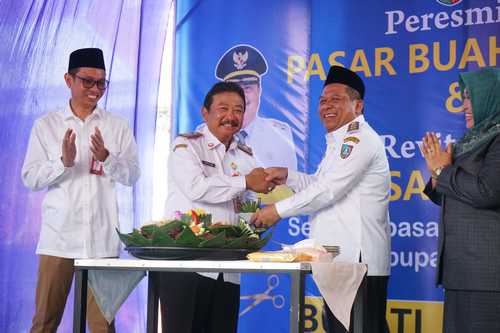 Usai prosesi pengguntingan pita, Wabup Jombang melakukan peninjauan langsung ke area kios. Dalam kesempatan tersebut, Wabup Jombang berdialog dengan para pedagang dan membeli sejumlah buah segar sebagai bentuk dukungan nyata terhadap ekonomi lokal.