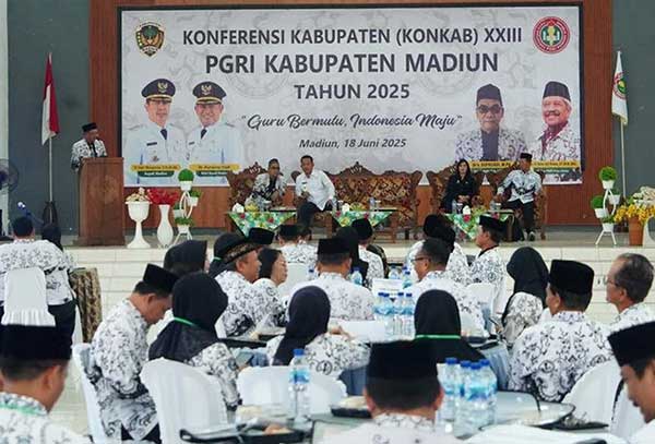 “Guru memiliki peran strategis dalam pembangunan pendidikan. Pemerintah Kabupaten Madiun sangat mengapresiasi seluruh upaya yang dilakukan oleh PGRI dalam meningkatkan kualitas pendidikan,” tegas Wakil Bupati Madiun, dr. Purnomo Hadi, saat membuka Konferensi Kabupaten ke-XXIII Persatuan Guru Republik Indonesia (PGRI) Kabupaten Madiun tahun 2025m Rabu (18/6/2025).