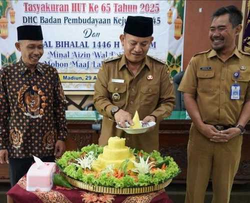Wakil Bupati Madiun, dr. Purnomo Hadi, hadir dalam Tasyakuran Hari Ulang Tahun ke-65 Dewan Harian Cabang (DHC) Badan Pembudayaan Kejuangan ’45 Kabupaten Madiun, yang dirangkai dengan Halal Bihalal 1446 H di Graha Retno Dumilah, Selasa (29/4).