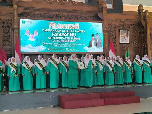 Ketua PW Fatayat NU Jawa Timur, Siti Maulidah, M.Pd, pimpin langsung prosesi pelantikan Jajaran pengurus Pimpinan Anak Cabang (PAC) dan Ranting Fatayat NU masa Khidmat 2025-2028 se-Kabupaten Tuban di Pendopo Krido Manunggal, Sabtu (26/07/2025).
