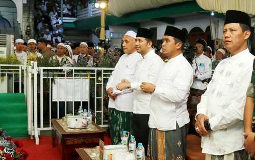 Wakil Gubernur Jawa Timur, H Emil Elestianto Dardak, Wali Kota Pasuruan, H Adi Wibowo hadir di acara Haul Akbar ke-44 KH Abdul Hamid di Ponpes Salafiyah, di Jalan Wahid Hasyim, Kota Pasuruan, Selasa (2/9).