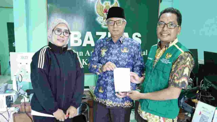 Wakil Wali Kota Kediri, Qowimuddin saat menunaikan zakat melalui Baznas Kota Kediri.