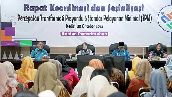 Hal ini disampaikan dalam Rapat Koordinasi dan Sosialisasi Percepatan Transformasi Posyandu 6 Standar Pelayanan Minimal (SPM) yang digelar di Ruang Joyoboyo, Kamis (30/10).