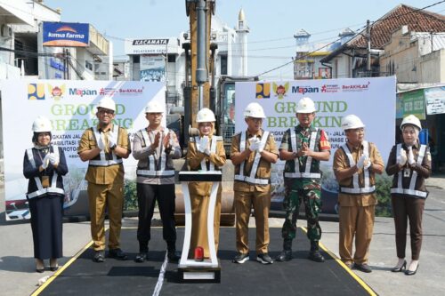 Wali Kota Kediri Vinanda Prameswati didampingi Wakil Wali Kota Qowimuddin, Sekretaris Daerah Bagus Ali, Kapolres Kediri Kota AKBP Bramastyo Priaji, Perwakilan Forkopimda, dan Plt Kepala DPUPR Yono Heryadi, groundbreaking Peningkatan Jalan Stasiun – Jalan PJKA, Selasa (24/06/2025