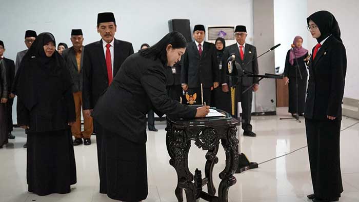Wali Kota Kediri Vinanda Prameswati mengukuhkan sebanyak 61 kepala sekolah (kepsek) tingkat TK, SD, dan SMP se-Kota Kediri, di Aula Ki Hajar Dewantara Dinas Pendidikan Kota Kediri, Senin (29/12).