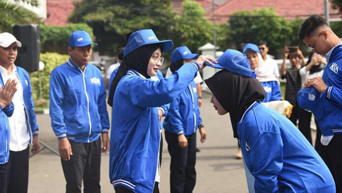 Sebanyak 1.811 mahasiswa Universitas Nusantara PGRI Kediri dilepas Wali Kota Kediri Vinanda Prameswati untuk melaksanakan Kuliah Kerja Nyata (KKN) Tematik di 46 kelurahan se-Kota Kediri, Rabu (21/1). Kegiatan pelepasan berlangsung khidmat di Halaman Balai Kota Kediri.