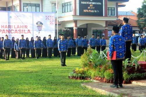 Wali Kota Pasuruan, H Adi Wibowo, memimpin upacara peringatan Hari Lahir Pancasila yang di lapangan BKD Kota Pasuruan.