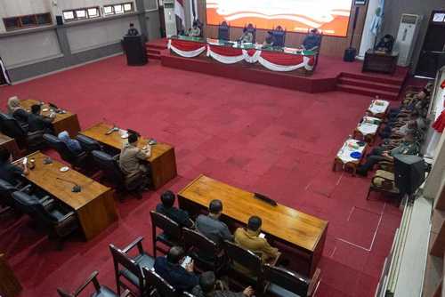 DPRD Kota Pasuruan melaksanakan paripurna I dengan agenda penyampaian Nota Pengantar Rancangan Peraturan Daerah (Raperda) Rencana Pembangunan Jangka Menengah Daerah (RPJMD) tahun anggaran 2025-2029 serta Raperda Perubahan Anggaran Pendapatan dan Belanja Daerah (APBD) Tahun Anggaran 2025, Jumat (18/7).