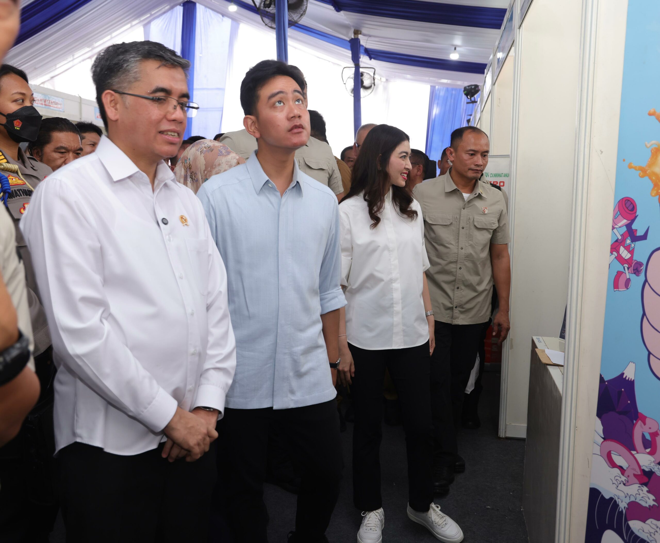 Wakil Presiden Gibran Rakabuming Raka, didampingi Menteri Ketenagakerjaan Yassierli meninjau stand Job Fair 2024 di Balai Besar Pelatihan Vokasi dan Produktivitas (BBPVP) Medan, Sumatera Utara, Kemarin