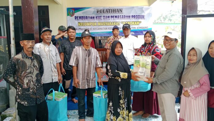 Warga Desa Pojokrejo, Kecamatan Kesamben, Kabupaten Jombang dilatih untuk membuat kue sekaligus memasarkan produk yang dihasilkan. Pelatihan itu digelar di salah satu kelompok masyarakat di Dusun Ngerco, Desa Pojokrejo, Kecamatan Kesamben, Kabupaten Jombang, Kamis (02/04).
