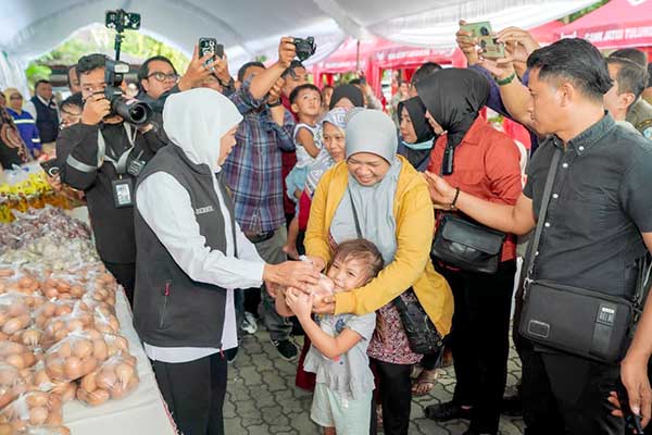 “Termasuk di pasar murah (di Pendopo Kongas Arum Kusumaning Bongso) ini, yang dijual Rp 11.000 per kilogram. Berarti kalau 5 kilogram menjadi Rp 55.000,” paparnya.
