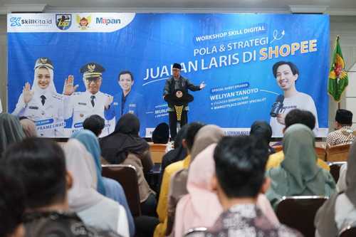 Wakil Wali Kota Kediri membuka workshop skill digital ‘Pola dan Strategi Jualan Laris di Shopee’. Acara berlangsung di Ruang Joyoboyo Balai Kota Kediri, Minggu (23/11/2025).