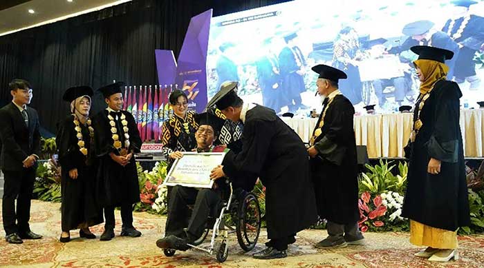 “UM Surabaya memberikan apresiasi pada lulusan terbaik atas kegigihannya supaya bisa menyelesaikan kuliahnya meskipun dengan perjuangan yang luar biasa, yaitu para difabel,” ucapnya.