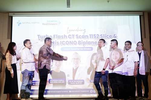 Bertepatan dengan World Stroke Day, National Hospital kembali menegaskan komitmennya sebagai rumah sakit berstandar global dengan meluncurkan sistem diagnosis dan terapi stroke terintegrasi pertama di Indonesia. Sistem ini menggabungkan dua teknologi mutakhir dari Siemens Healthineers-Turbo Flash CT SCAN 1152 SOMATOM Force dan ARTIS Icono Biplane (Pro) yang mampu mempercepat proses diagnosis dan tindakan stroke hanya dalam hitungan menit.