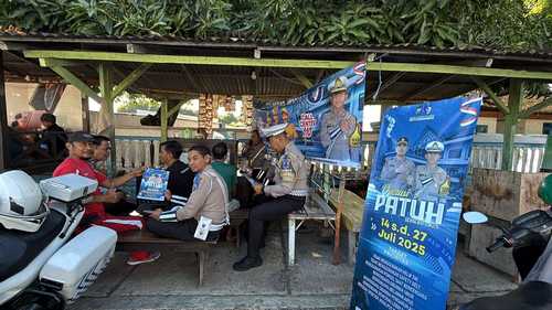 Selain edukasi, petugas juga membagikan brosur dan stiker Operasi Patuh Semeru 2025, yang berisi informasi 8 pelanggaran prioritas yang menjadi sasaran penindakan. Mulai dari tidak menggunakan helm, melanggar marka, mengemudi dalam pengaruh alkohol, hingga penggunaan knalpot brong.