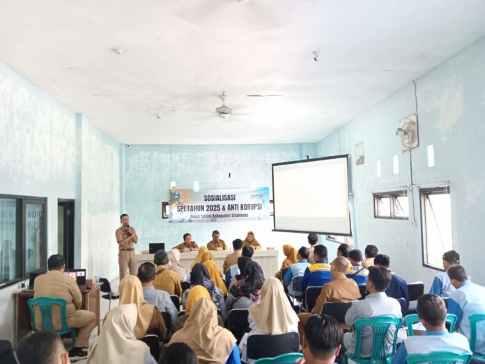 Untuk ikut memberikan edukasi dan pemahaman, jajaran Inspektorat Pemkab Situbondo menggelar kegiatan sosialisasi Survei Penilaian Integrasi (SPI) tahun 2025 dan anti korupsi kepada seluruh OPD. Salah satu diantaranya di Dinas Sosial (Dinsos), Kabupaten Situbondo, Senin (30/6).
