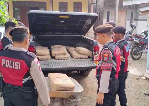 Jajaran Samapta Polres Situbondo Polda Jatim menyalurkan bantuan belasan sak semen untuk renovasi Musala di Desa Klampokan, Kecamatan Panji, Minggu (11/5). Program ini untuk mendukung pembangunan dan perbaikan di musholla setempat.